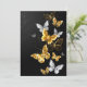 Gold, Schmuck und weiße Schmetterlinge auf schwarzem Hintergrund. Goldener Schmetterling.