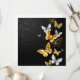 Gold, Schmuck und weiße Schmetterlinge auf schwarzem Hintergrund. Goldener Schmetterling.