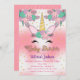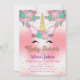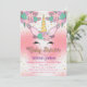 Hübsch wie Unicorn Baby Shower Einladung. Bewölkt, Imitate vergoldete Folie Schriftart, Akzente und zurück mit aquamarinen, lila und rosa Blume.