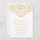 Diese elegante, uralte Hochzeitseinladung besticht durch eine delikate goldene Damast-Verzierung auf weißem Hintergrund. Ideal für eine Vintage Deko-Hochzeit.
