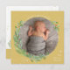 Die Weihnachtsfeier Weihnachten Grün-Feier Fotokarte Design bietet handgemalte Aquarell-Grün in einem goldkreisförmigen Kranz-Set auf einem goldenen Hintergrund. Ihr Bild ist einfach gerahmt und das Design ist mit Aquarelltuchen und passenden Heiligbeeren hervorgehoben. #Christmas #Holidays #ChristmasCards