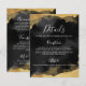 Elegante Bar oder Bat Mitzvah Event Details Card. Diese stilvolle Karte eignet sich ideal, um wichtige Informationen mit Ihren Gästen zu teilen, um Details für den Tag der Feier oder ein ganzes Wochenende von Veranstaltungen zu empfangen, mit Platz für Informationen sowohl auf der Vorder- als auch auf der Rückseite. Das Design zeichnet sich durch einen schlichten schwarzen Hintergrund aus, der von den Imitaten goldene Aquarellfarben oder Alkoholfarben-Akzente am oberen und unteren Rand gerahmt ist und eine luxuriöse und moderne Ästhetik schafft. Die Vorderseite bietet Platz für wichtige Details wie Veranstaltungszeiten, Orte, Kleidungscodes oder Transportvorkehrungen, während die Rückseite zusätzlichen Platz für Unterkünfte, UAWG oder persönliche Hinweise bietet. Ein subtiler, weißer David-Stern auf der Rückseite verleiht eine sinnvolle und elegante Touch. Das Layout verwendet eine Mischung aus Skript- und klassischen Serif-Schriftart für ein ausgeklügeltes und dennoch leicht verständliches Aussehen. Vollständig anpassbar, können Sie Text, Schriftart und den Star of David Farbton anpassen, um das Thema Ihres Events zu Anzug zu bringen. Diese Karte eignet sich ideal für Bar- oder Bat Mitzvah-Feiern, um Ihre Gäste zu informieren und zu schätzen.