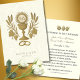 Eine heilige und elegante katholische Hochzeitsgebet-Karte mit dem Heiligen Eucharisten, symbolisiert durch die strahlende IHS-Kalice, darunter goldener Weizen, Trauben und Trauerringe - ein reiches Spiegelbild der Präsenz Christi im Herzen des Heiligen Traumes. Personalisiert mit den Namen der Braut und des Bräutigams und dem Hochzeitstag, gepaart mit einem ehrfürchtigen Brautgebet auf der anderen Seite. Ein zeitloser Sake für die Gäste, sich an Ihre heilige Gewerkschaft zu erinnern.