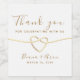Einfache, elegante, minimalistische, goldene Buchstaben in Verbindung mit weißem Imitat mit goldgelben Seilkerzen. Einzigartige, moderne Hochzeit danke Weinlabel.