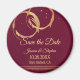 Moderner Save the Date Magnet mit goldfarbenen und goldfarbenen Weinringen mit Glitzern auf bordeauxrotem und marsala Hintergrund. Schön für eine Weinhochzeit oder Feier in einem Weingarten oder Weinkeller.