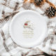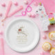 This Christmas paper plate features a stunning gold and white reindeer, adorned with a red Christmas bow, and complemented by sophisticated gold typography. Make it your own by changing customizable text.