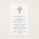 Eine elegante und nachdenkliche Hommage an einen geliebten Menschen. Ein weiblicher und verzierter goldgelber Ovalrahmen umrahmt das Foto des Verstorbenen. Drei Zeilen Text unten erlauben es Ihnen, es zu personalisieren. Ich wählte in Loving Memory, ihren Namen und ihre Lebensdaten. Auf der Rückseite ist ein extravagantes glänzendes Goldkreuz. Unten ist Platz für ein Gebet, einen Psalm oder ein Gedicht. Der Hintergrund ist weiß.