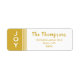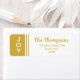 Fügen Sie Ihren Urlaubsmailings das letzte Detail mit diesem einfachen und modernen Rücksendelabel aus der JOY Ferienkollektion hinzu. Ein goldenes Band auf der links Seite des Labels hat das Wort JOY in einem schlichten weißen Schriftart. Die Erholung des Etiketts ist weiß mit Ihrem Namen und Ihrer Rücksendeadresse in einer Goldtypografie.
