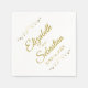 Diese wunderschönen Servietten machen Ihren Hochzeitsempfang zu etwas ganz Besonderem. Sie zeichnen sich durch ein schlichtes, aber dennoch elegantes Design aus, das auf weißem Hintergrund mit goldgelbem Imitat-Rahmen und Blumenrahmen besticht. Einfach mit Ihren Namen und dem Hochzeitsdatum personalisieren.