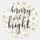 Gold & White Retro Snowflakes MERRY & BRIGHT Gefal Runder Aufkleber