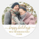 Gold White Script Couple Foto Happy Holidays Runder Aufkleber