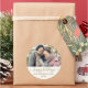 Elegantes modernes Script Gold und Weiß "Happy Holidays" Kalligraphie Script Couple Foto Weihnachtsfeiertag Große Rundsticker. Ideal zum Verschicken von Accessoires Umschlag Aufkleber und Geschenkklammer.