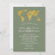 Gold World Map Destination Sage Green Wedding Einladung