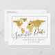 Gold Imitats Weltkarte Save the Date Postkarte mit modernem und minimalistischem Design, plus ein Herzmarker, den Sie bewegen können, um Ihre Hochzeit in Urlaubsort Lage, Abenteuer Hochzeitsort oder Reise Thema Inspiration Ort zu markieren. Klicken Sie auf "Weiter anpassen", um das Herz zu verschieben und Designänderungen vorzunehmen.