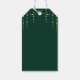 Smaragdgrüner Weihnachtsgeschenk-Tag mit goldenem Weihnachtsbaum und eleganten Ornamenten Illustration und benutzerdefinierten Familiennamen Skript.