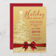 Elegantes Weihnachtsgeschenk / Open House / Dinner Party Einladung Template mit "Goldener Weihnachtsbaum mit Lichtern der Märchen" & Rotes Band. Beeindrucken Sie Ihre Freunde mit diesem raffinierten und eleganten Einladungs-Design. Vollständig anpassbar!