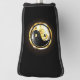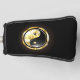 Schmuck, Gold und schwarzes Yin auf schwarzem Hintergrund. Gold Yin Yang.