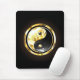 Schmuck, Gold und schwarzes Yin auf schwarzem Hintergrund. Gold Yin Yang.