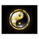 Schmuck, Gold und schwarzes Yin auf schwarzem Hintergrund. Gold Yin Yang.