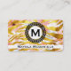 Gold Zebra Pattern | Pink Flowers business card