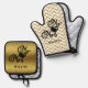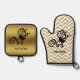 Gold Zickzack Mr & Mrs. Hearts Monogram Golden Ofenhandschuh & Topflappen-Set