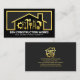 Cover mit goldenem Gebäude und handwerklichem Design. Die Goldwerkzeuge können einen Teil der Leistungen darstellen, die Sie anbieten können, z.B. den Kettenschrauber für Gerätereparaturen, den Umzug für Gartenbau, den Hammer für Zuhause-Umbau usw. Darunter finden Sie Ihren Firmennamen und die Kontaktdaten. Overleaf, oben steht ein "Zuhause handyman tools" Logo, das Sie verwenden können. Danach folgen Ihr Name, Ihre Kontaktdaten und ein Slogan, den Sie ändern können. Die Buchstaben hier sind in Imitat Gold. Eine großartige Karte für alle, besonders für Handwerker, Innenarchitekten und Bauunternehmen. #handyman #construction #buildingtragnehmer #generaltratragnehmer #homerepair #tratragning #remodeling #renovation #handymantools #interiordesign #roofing #roofer #roofingtragnment #homeimprovement #zazzlemade
