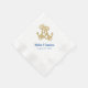 Zwei goldene Anker Hochzeitsnacken mit marineblau blauem Text. Gelanges Design, damit Servietten in Diamantform Set werden können. Das nautische Design hat zwei Zeilen Text in fett geschrieben für Namen und gedruckten Schriftart für das Datum, oder kurze Nachricht an die Gäste zu danken.