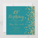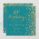 Elegantes 21. Geburtstags-Goldaquamarine blaue Imitat-Glitzerconfetti-Einladungsschablone. Zusammenpassende Produkte verfügbar!