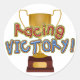 Stickerei Gold-Trophäe, mit Grafiken aus einem Gold-Tasse-Stil Trophäe. Farbiger grafischer Text, in der Mitte liest sich, Racing Victory. Perfekt als Geburtstagsparty-Favoriten oder Prämienticker für die Geburtstagsparty eines Rennwagens.
