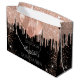 Eine Geschenktasche für eine glamouröse Quinceañera, 15. Geburtstagsfeier. Ein schwarzer Hintergrund mit Rose Gold Tropfen, Maltropfen Look und Ballons. Der Text: Der Name wird mit einem modernen handgeschriebenen Stilskript geschrieben. Personalisieren und fügen Sie Datum und Namen hinzu.