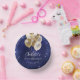 Marineblau mit eleganten Imitaten, Glitzern und goldenen Ballons. Die blaue Farbe ist ungleichmäßig. Personalisieren und fügen Sie einen Namen und Alter. Weiße Buchstaben.