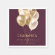 Ein weinroter Hintergrund mit Imitaten, goldfarbenen und weißen Ballons. Personalisieren und fügen Sie einen Namen und Alter. Goldener Text.