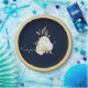 Schöne weiße Blume & goldene Blätter blaue Papierplatte