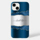 Blau, Silber und Imitat Gold-Age, Marmor-Stein-Druck als Hintergrund Personalisieren und fügen Sie Ihren Namen. Der Name ist mit einem modernen handgeschriebenen Stilskript geschrieben.