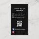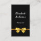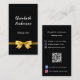 Ein klassischer schwarzer Hintergrund. Mit einem goldenen Bogen dekoriert. Personalisieren Sie Ihren Namen, Ihren Titel und Ihre Kontaktinformationen und fügen Sie diese hinzu. Fügen Sie Ihre Website url/link zum Qr-Code hinzu. Mit Facebook und Instagram Icons. Weißer Text.