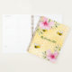 Gelber, weißer Hintergrund mit Wabenmuster. Blume mit rosa tropischen Blumen, Hibiskus und Hummeln. Der Text: My Garden 2021 (oder ein Jahr)
