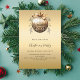 Eine Einladung für ein Weihnachtsfest. Ein Imitat goldener Hintergrund. Die Einrichtung ist mit einem großen goldfarbenen Vintagen Bauble gestaltet. Personalisieren und fügen Sie die Details hinzu. Schwarzer Text.