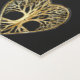 Gold Baum des Lebens Herz schwarze Muster Design. Ein einzigartiges und faszinierendes Design mit einem schönen Lebensbaum im Herzmotiv in goldenem Glanz vor einem schwarzen Hintergrund. Ideal, um Liebe, Wachstum und Verbindung auszudrücken.