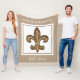 Eleganter und weiter entwickelter goldener Blick-Lilienentwurf des bearbeiteten Eisens mit einem weißen dekorativen Rahmen. Aller Text ist kundengerecht sowie die Hintergrundfarbe. Fantastische Fleecedecke für eine Familie! Ein besonders von Louisiana! Geben Sie als über Brautgeschenk, das jeder sprechen wird und die Braut und der Bräutigam Liebe werden!