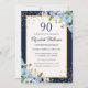 Goldblauer BlütenSparkle 90. Geburtstagsfeier Einl Einladung