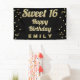 Personalisierter Bonbon 16-Geburtstags-Partyfahne für Jugendmädchen mit grafischer Bildgrenze des schönen glänzenden Goldconfetti mit Glitzern. Alles Gute zum Geburtstag des Chic-moderne Bonbon-16 regelte Text mit Imitatgoldbling Effekt und Glitzern auf einen klassischen schwarzen Hintergrund. Wenn Sie irgendeine Unterstützung benötigen, die Ihr Produkt in Verbindung treten besonders anfertigt mit mir bitte, über meinen Speicher und ich bin glücklich zu helfen. MERKEN SIE BITTE: Diese sind Ebene grafische Druckbilder - keine angehobenen Teile oder wirklichen Beschaffenheiten.