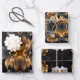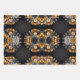 Goldblume, silber, floral, schwarzer Hintergrund Geschenkpapier Set