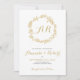 Goldener Blumenkranz auf weißem Hintergrund, anpassbare Einladung zur Hochzeitsfeier.