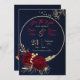Romantische Bordeaux-Blume und goldene Blätter auf goldmarineblau Save the Date Einladung Die Details des Glitzer werden simuliert