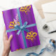 Ein buntes, festliches Goldmuster, das über ein metallisches lila verstreut ist, um Ihren Weihnachtsgeschenken eine Touch Eleganz zu verleihen.