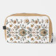 Entdecken Sie unsere stilvolle Blumentoilettentasche mit einem eleganten hellbeigen Sockel in goldbraunen und gedämpften orangefarbenen Tönen. Diese vielseitige Tasche wurde mit feinen aquamarinen und grau-grünen Details ergänzt und vereint Funktionalität mit einem schicken Design - ideal für Reisen oder den Alltag.