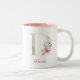 Goldbrief D, Monogramm D, rosa Blumengeschenk ihr Zweifarbige Tasse