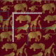 Silhouettedschungeltiere scheinen, auf den dunklen Burgunder-Hintergrund dieses Gewebes fast zu glühen! Die TierSilhouetten schließen einen Elefanten, eine Giraffe, einen Löwe, einen Rhino, einen Papageien und einen Affen mit ein. Jede Silhouette wird mit brauner Zebraart die Streifen gefüllt, die durch helles Gold laufen. Einzigartig und attraktiv!