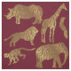 Goldbrown-Streifen-Dschungel-Tiere auf Burgunder Stoff
