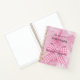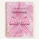 Ein mädchenhaftes Notizbuch für Schule, Journalismus oder Tagebuch. Rosa Flüssigkeiten mit goldenem Splash als Hintergrund, verziert mit einem großen karierten Bogen. Personalisieren und einen Namen hinzufügen.
